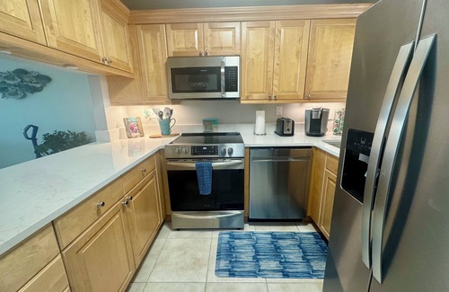 Sleeps 4, 1 Bedroom - King Bed, 2 Full Bathrooms, Queen Sleeper Sofa, 2 TVs, Balcony, fully stocked kitchen, towels & linens provided, coin laundry available, elevators. Newly remodeled unit. Assigned, Covered Parking. Gated Community. Men’s & Women’s Fitness Centers, Club House, Pool & Jacuzzi, Ocean Front, Boat Ramp, Steps in to ocean. Great for Paddleboard & Kayaking. Walking distance to several restaurants. Minutes from several marinas. Best scuba diving & deep sea fishing in Keys!