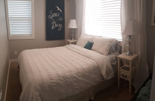 Guests are sure to enjoy a memorable vacation in this fully furnished, 1 bedroom/1 bath guest house. The main/master bedroom has a queen-sized bed comfortable for sleeping 2 people. The light and bright living room is furnished with whimsical touches inspired by the ocean. It includes a pull-out queen size sleeper sofa. The kitchen is fully equipped with a full-size refrigerator, stove/oven, dishwasher and microwave. The small dining room table is the perfect seat for two to look out across the water and mountains.