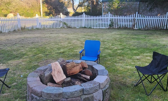 Just a 2 minute walk from the beach this cozy 2 bed 1 bath retreat sits behind a fully fenced 0.20-acre yard—perfect for pets You must enter through a double white gate, leading to outdoor amenities like the fire pit and the BBQ grill This non-smoking yellow house with a white front door offers indoor comforts including a private hot tub, two fireplaces, an air fryer, a bidet seat, and Wi-Fi. Ideal for couples or small families to relax and make lasting memories there’s also an rental next door.