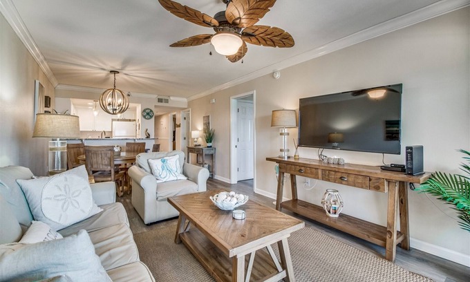 - Spacious Accommodations: With 980 sqft of living space, Ocean Breeze West features a master bedroom with a king bed, a guest room with a queen bed, and a sofa sleeper—ideal for accommodating your wedding party comfortably.