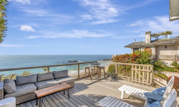 Enjoy an ocean front retreat at our family town home . Both units comfortably sleep 12 adults. Private access to Laguna Beaches most exclusive beach (Torts beach between 1000 Steps and Table Rock) private stairs connected to the house leading directly to the sand. No public access to this beach!
