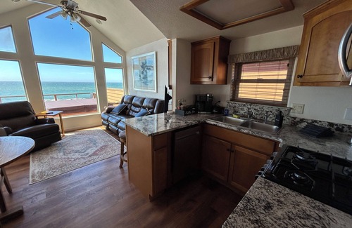 Enjoy a secluded oceanfront hideaway with amazing views of the Pacific Ocean from the inside and out on your private balcony. A full size hot tub is available where you can enjoy gorgeous sunsets and starry evenings.