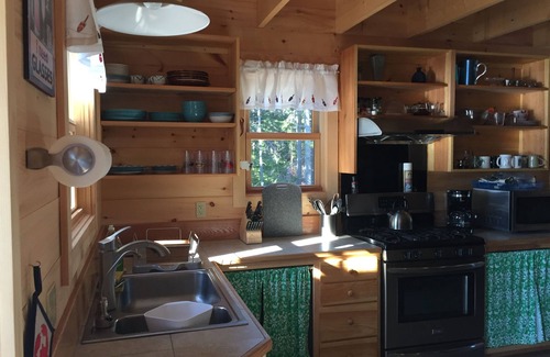 Both bedrooms have a separate door to the deck overlooking the bay, setting sun, mountain, and the night sky. Gazing at the milky way may be the highlight of your stay. Two air mattress (and pump) supplied for those wanting to overnight on the deck. Those pesky mosquitoes do not seem to fly this high, making this spot a pleasure especially at night. Be sure to use the LED glasses for your nighttime liquid fortifications!