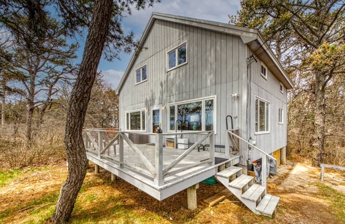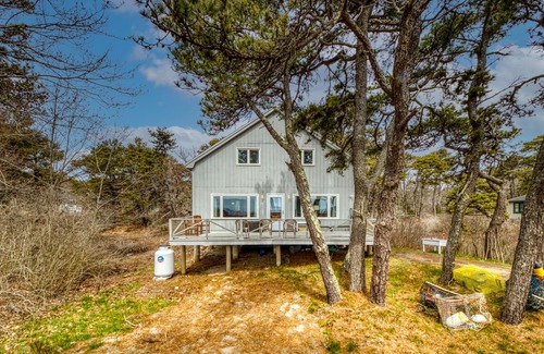 The house sits on the beach with the property leading up to the high tide mark. Enjoy the ocean views from the deck while you work on your tan or enjoy a good book. The property features one bedroom downstairs with a queen bed. One 3/4 bathroom downstairs. Master bedroom has a king and a twin. 3rd bedroom has a full size bed and set of bunks. Wood burning stove to keep you warm in the living room. Also a newly added rinnai heater to warm the entire cottage. Nice large front deck and outdoor shower in the back of the house. Kitchen completely renovated during winter of 2023! Reservations from June to Sept are Sat to Sat only.