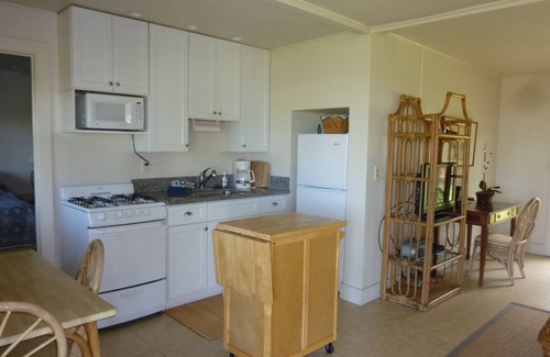 This non-smoking plantation style unit is located near Waimea Canyon (the Grand Canyon of the Pacific) and Barking Sands Beach, with convenient access to restaurants, movie theater, shops, markets, and the famous Jo-Jo's shave ice. The condo-style unit has been recently remodeled and redecorated by a well known designer, and is loaded with amenities that will make you feel instantly at home. Quality furniture and linens, tile floors, and lots of windows to take in that view. One bedroom has a king bed, and the second bedroom has two double beds, which are much roomier than those standard twin beds you find elsewhere.
