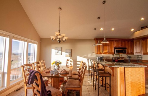 This home is conveniently located in a quiet, private neighborhood featuring a grassy fenced yard where your four-legged canine friends are welcome to join the fun, too! It's a very short walk to an easy to navigate beach access that leads to miles of beautiful, sandy beach. Oregon Waves is just a few miles south of the active fishing port of Newport, where you will find many activities to keep you busy, including the Historic Bayfront and the Nye Beach districts, both packed with wonderful restaurants and shops. This is a perfect destination for a romantic coastal retreat as well as for a friends and family getaway.