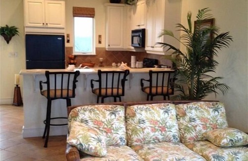 Welcome to The Gardens at Discovery Bay. You will enter the gated community and find 'Due South' right on the ocean full of fresh air and sunshine! The guest house provides the privacy you're looking for complete with 2 full bedrooms (queen size beds) and bathrooms. You will have for your convenience a laundry room, computer room, and fully equipped kitchen. There are views galore at every level, from the patio overlooking lush gardens and white beaches, to upstairs with a balcony the full width of the house. There is a bedroom on the first level with an attached full bathroom. Upstairs the bedroom has access to the balcony and there is another full bathroom on this level too. There are 2 bicycles, and a kayak to enhance your outdoor fun right at the house. You can easily walk to a local popular attraction called Garden in the Groves. This is a tropical garden complete with a restaurant and wildlife, a really fun place to explore.