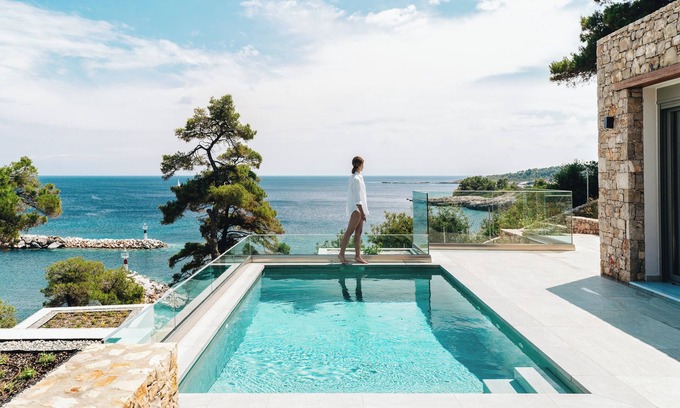 Calm, tranquil retreat for you to relax in your own private pool while looking out at the breathtaking panoramic sea views of the Aegean.