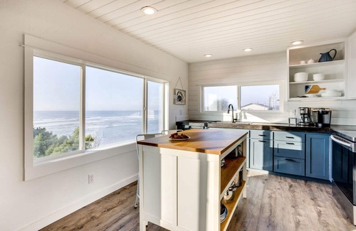 The Seal Rock Cottage is a wonderful oceanfront one level home and the perfect beach getaway for friends and family. Perched on a bluff overlooking the ocean, you can stay inside and watch the moods of the ocean from the wall of windows that flood the living room with light or relax on your deck, sit back and lounge in the sunshine.