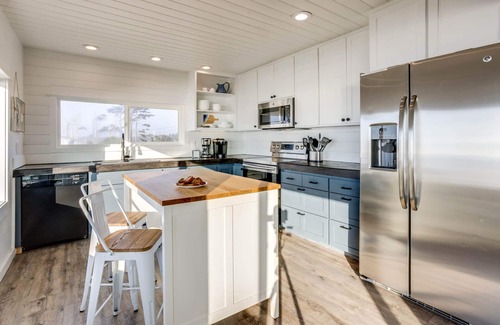 The inviting open floor plan offers a comfy living room, a large inviting dining table for sharing meals, and a well-appointed kitchen. The wood burning fireplace provides extra comfort and ambiance while watching a storm roll in. The master bedroom has plenty of space with an ensuite bath, king bed, extra seating and a peek of the ocean. The second bedroom is a lovely room with a queen bed and a bath across the hall. With two bedrooms and two bathrooms you will be sure to be comfortable as can be during your stay. The separate game room offers plenty to do after spending the day exploring the coast. Choose from ping pong, foosball, Connect Four or an arcade game that includes Pac-Man to enjoy during your stay.