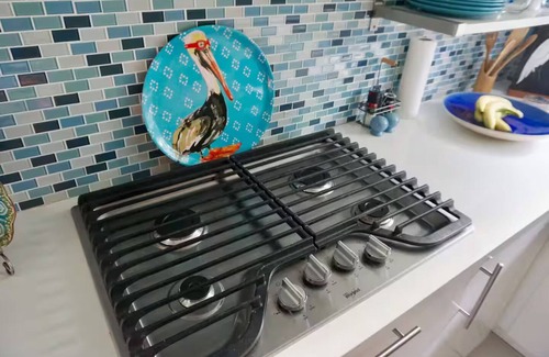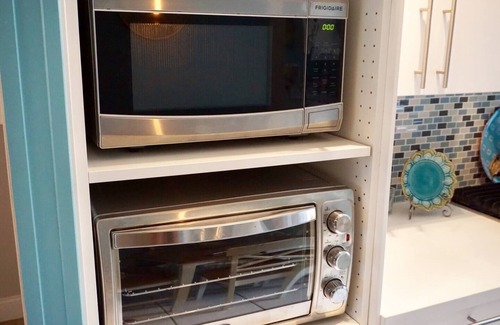 Inside, you'll have all the amenities you'll need to make your stay as comfortable as possible. Our newly remodeled kitchen features a 4-burner gas-range stove top, a stainless steel side by side Frigidaire Gallery refrigerator with filtered water and ice maker, microwave and multi-tier Oster convection oven. There is also plenty of storage space and a brand new washer and drier.