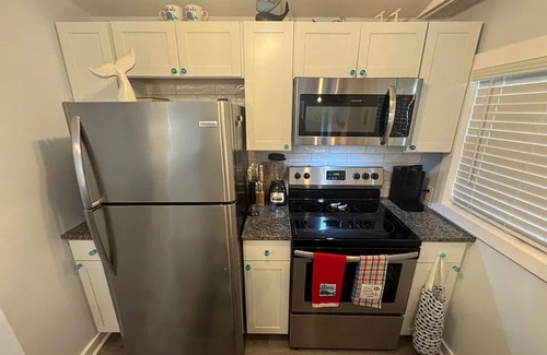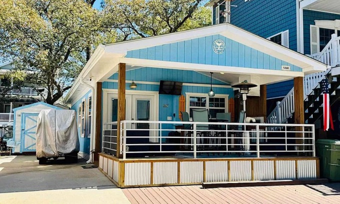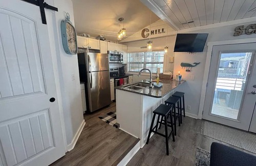 Discover this adorable 3-bedroom, 2-bathroom gem in Myrtle Beach. This quaint house features 1 queen bed and 2 full beds, perfect for a cozy stay. The bathrooms are equipped with a tub shower combo in bathroom 1 and a stand up shower in bathroom 2. With amenities like central heat/air, an indoor and outdoor kitchen, large covered porch, outdoor shower, and a complimentary golf cart, guests can relax comfortably. Enjoy your amazing vacation in this charming property. Feel free to reach out to us during your stay - we're happy to suggest local spots to check out.