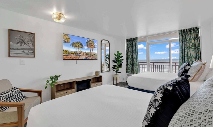 Step into coastal luxury with two queen beds and a sofa bed, providing ample space for up to 6 guests. The interior is thoughtfully designed with modern furnishings and a soothing color palette, creating a relaxing atmosphere for families or small groups.