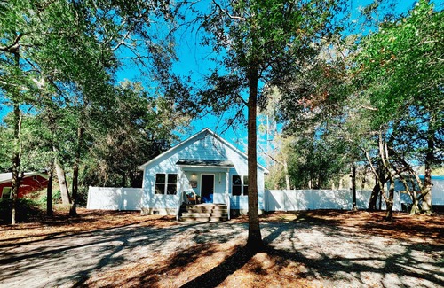 Step into a quaint, simple cottage atmosphere full of coastal wanderlust, artistic touches, welcoming amenities and that wonderful outdoor, country salty air! At night you can oftentimes hear the ocean rolling/echos. The Location: Shallotte is an up and coming area. It’s an inland town with homes ranging from trailers, cottages, new-builds, and modular homes. There are many wooded areas. Shallotte downtown offers delicious restaurants and shopping! **Please note: *Security camera is located in the front of the property for security of the premises. The camera faces the parking area/front of the cottage. **There is potential for noise. This is a dog-friendly, residential area. Noise such as dogs barking, thru traffic, construction, or wildlife can be heard. A couple of noise deterrents are placed on the outside of the property (facing outward) to aid with any possible noise. Noise is out of the owner’s control.