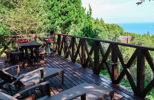 - A spectacular view! Relax on the sea-view terrace/Scandinavian log house with hot spring & fireplace