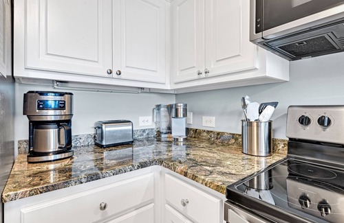 - Modern Amenities: Enjoy a newly updated kitchen with granite countertops and well-stocked cabinets, as well as a living area with a large HDTV, ensuring all modern comforts during your stay.