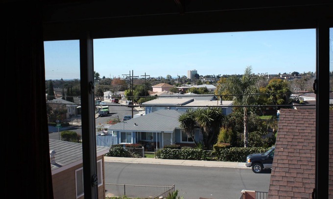 Apartment is a 'granny flat' located above a garage, away from the street, and has a nice ocean view from the living room and porch. Street parking, wifi, A/C, remodeled 2023, King bed, walk-in closet, full kitchen. Very centrally located- 5.5 miles from Ocean Beach, 5.8 miles to San Diego Zoo/Balboa Park, 6.5 miles from Sea World, 7.4 miles to Little Italy, 8 miles to Petco Park/Downtown/Convention Center, 9.5 miles to La Jolla, 9 miles to SDSU, 2.8 miles to USD, 12 miles to UCSD.