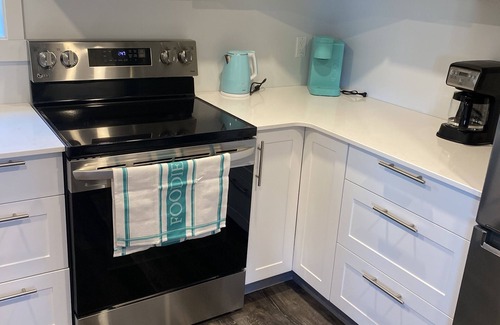 1 bedroom, 1 bathroom guest suite, completely self contained, separate entrance with a/c and heat, in floor heating in the bedroom and bathroom, 2 smart tv’s and wireless hi speed internet.