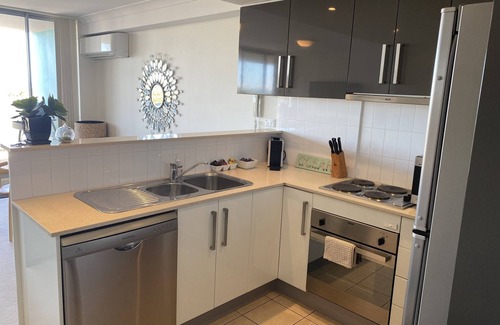 Modern fully equipped kitchen with ocean views, all new inclusions ( large new fridge, dishwasher, microwave, good quality pots, pans, frypan, and all cooking utensils,