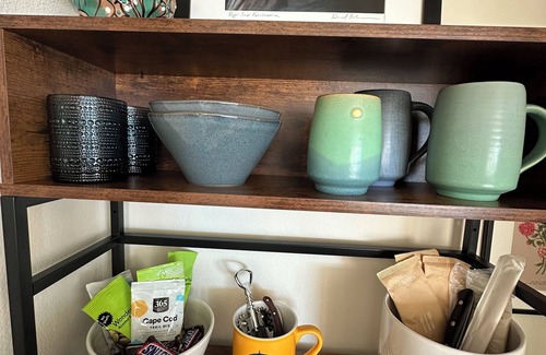 Pacific View Cottage has air conditioning, newly remodeled bathroom, a Nespresso Machine, an electric tea kettle, microwave, mini frig, bed linens, hair dryer, shampoo, shower gel and local bar soap, towels, beach towels, wifi, books, games, yoga mat, extra blankets, new King bed in Fall 2025 and of course a few little snacks and bottled waters.