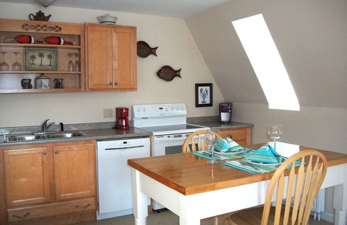 Sea Glass Way is close to everything yet off the beaten path, affording both privacy and convenience. Perfect for two people, this spotless, newly renovated and well-appointed apartment will provide a relaxing retreat to enjoy your vacation. Nestled by the shore of Union Bay, this second-floor apartment (stairway access) is quiet and private, yet close to everything you may want to enjoy--shopping, antiquing, great restaurants/bars, hiking, biking, kayaking, sight-seeing, beaches, whale watching, golfing, Schoodic Peninsula, Lamoine State Park Beach to name a few!! Sea Glass Way has a living room, kitchen/dining room, 1 bedroom with a queen bed, 1 full bath with washer/dryer. Ample, well-lit area for parking, front deck with bar table and chairs, outdoor picnic area with gas grill. Kitchen has all cooking utensils needed including Keurig, Mr. Coffee. Secure keyless entrance door lock. There are two sets of stairs (one inside and one outside) to access the apartment. The views of Union Bay, from the deck, are spectacular!