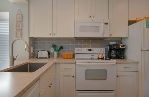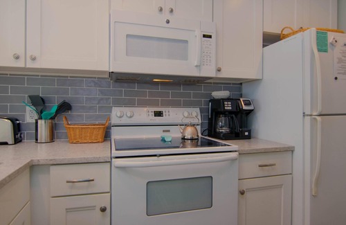 The kitchen is fully equipped with cookware and tableware, full refrigerator and stove, microwave, new dishwasher and new cabinets. There is a full washer and dryer in the kitchen for your convenience. The dining area provides seating for 6 with additional seating at the counter.