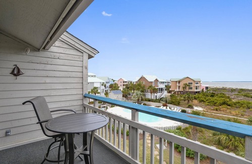 The guest bedroom offers two twin beds, cable television, ceiling fan, and an attached private bath. Prime location and beautiful views! And you will surely enjoy the ocean breeze and great views of the ocean and pool from your back deck. Near all Island amenities and just a two minute walk to the beach. Less than a minute to the beach boardwalk....then about 4 minutes to the beach with all the comforts of home.