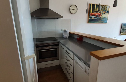 It has two double bedrooms with sea views (viscoelastic mattresses), two bathrooms, kitchen, living room and balcony. Kitchen equipped with oven, dishwasher, washing machine and microwave. WIFI. Water by Osmosis, it is not necessary to buy bottled water. Coffee pot with capsules. TV in living room and master bedroom.
