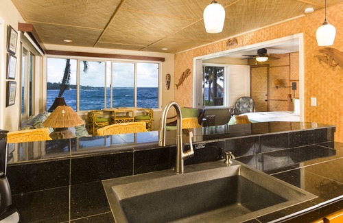 Waikaloa - Unit 1 is a 1 BR/1BA oceanfront unit. Just 100′ off the water, this lovely unit has warm tropical decor with bamboo walls and rattan furniture, a King-size bed, granite counter tops and hardwood floors. The stunning view is showcased by expanded windows. Facing due east, the sun rises right over the water!