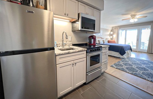 This cozy oceanfront studio apartment is perfect for couples, or a small family looking to live the local lifestyle and enjoy everything that Wrightsville Beach has to offer. Conveniently located to the beach, the infamous Crystal Pier, and Oceanic Restaurant, plus only walking distance to SUNdays coffee shop and South End Surf Shop, there's something for everyone in your group to experience while staying at A Short Walk.