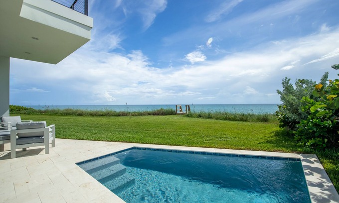 Welcome to our modern 4-bedroom, 4.5-bathroom oceanfront villa with private pool in Melbourne Beach.