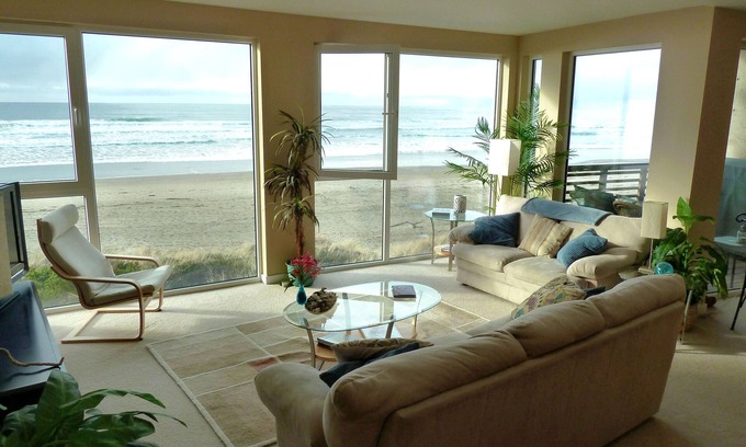 The amazing view and beautiful interior of this award winning oceanfront condo in Rockaway Beach will take your breath away. A spectacular wall of floor-to-ceiling windows and a private deck take in glorious beach, ocean and mountain views.