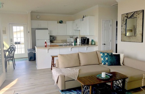 Great location for some pieceful R&R. We're on a stretch in the middle of the island that's sparsely populated with just one row of homes & adjacent homes aren't rentals. The beach is never crowded — even in the summer — & private beach access lends more seclusion.