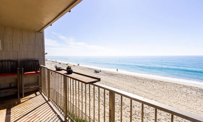 Oceanfront condo on the sand is California Dreamin’ at its finest! Enjoy PANORAMIC OCEAN VIEWS from the private balcony, sip coffee on a beach walk, swim, surf, play beach volleyball, or enjoy a day on the sand…fun at your fingertips!