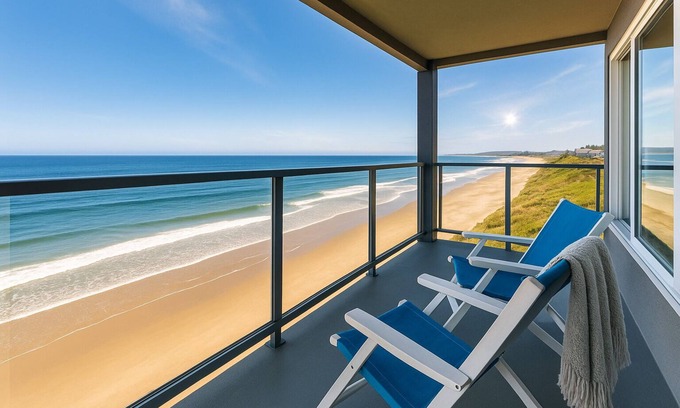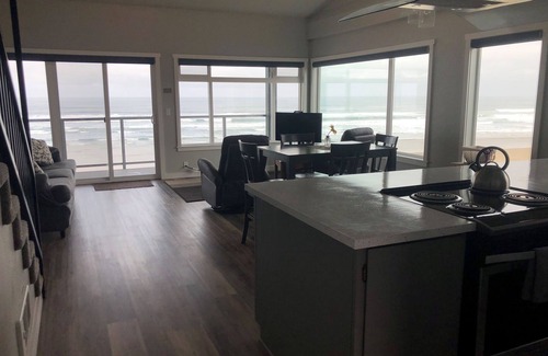 This top-floor corner condo sits right on the sand with sweeping views of Nye Beach, Yaquina Head Lighthouse, and the ocean. Ideal for a romantic escape or family getaway!