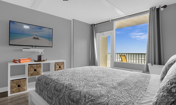 Welcome to the "World's Most Famous Beach" - Daytona Beach, FL! Ready for some vitamin Sea? Come stay at our non-smoking one bedroom condo with one queen size bed and a full size sofa bed with direct beach access! Breathtaking ocean view the moment you step inside. Kitchen equipped with refrigerator, sink, microwave and stovetop. Come relax and watch the sunrise from our Private balcony and listen to the waves crashing.