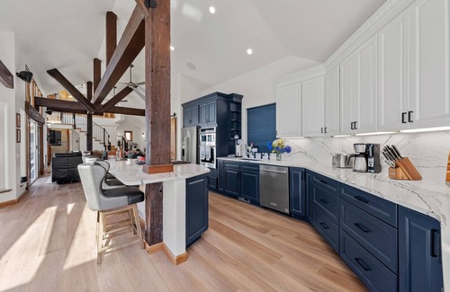 This unique retreat consists of two newly remodeled buildings: the Main House and the Cowboy Cabin game room. The Main House features two bedrooms, two full baths, an open-concept living room, a fully equipped kitchen, and a dining area. The property accommodates up to six guests with ample space for relaxation and comfort.