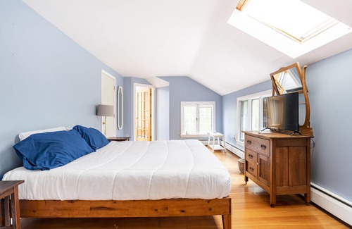 If you're searching for a stunning wedding accommodation, look no further than the Oceanfront Farmhouse - The Red House, situated in picturesque Brunswick, Maine. This spacious property offers the perfect blend of comfort and charm for groups celebrating love.
