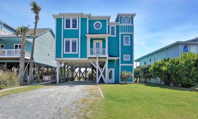 Located in the charming community of Holden Beach, this oceanfront paradise offers easy access to local attractions and natural beauty. Spend sun-soaked days on the beach, just a short stroll away, or explore nearby points of interest for a taste of coastal Carolina charm. With a variety of shops, restaurants, and recreational activities at your fingertips, you and your guests can effortlessly create lasting memories. Whether you’re planning wedding festivities or a relaxing getaway, the Oceanfront Gem awaits to welcome you home.
