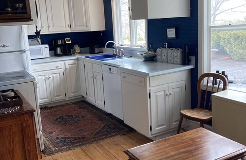 Discover this terrific 4-bedroom gem in Belfast. Not far from downtown and amenities, this ocean front home affords guests terrific views of Penobscot Bay from its oversized deck and almost every room in the house! A custom built granite seawall avoids trees from blocking the view and the custom granite steps lead to your own private beach. This house is adorned with beautiful antiques that add that touch of class to your family get together or reprieve from city life. Belfast is a vibrant town with a thriving arts scene, working waterfront and great restaurants - truly something for everyone!