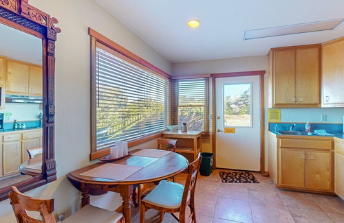 The bluff top apartment looks down into a secluded cove, giving expansive views of the ocean and of miles of unspoiled shoreline. Even distant Lost Range mountains are in view on clear days. This separate part of a larger home boasts a range of amenities, including a hot tub, deck, and internet access. Relax in the cozy living space with a queen bed, streaming TV, and a selection of books and board games for entertainment. Enjoy the convenience of kitchenette with a toaster oven, dining area, and a standalone shower for your comfort.
