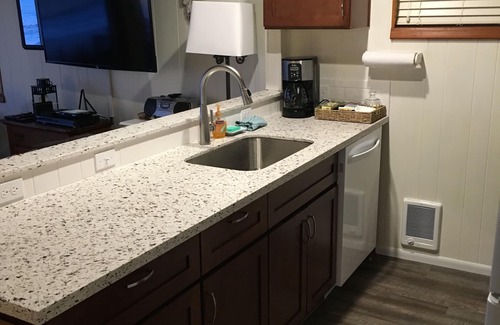 * The kitchen has been fully remodeled with new cabinets, quartz countertops, and new appliances ( including a dishwasher)