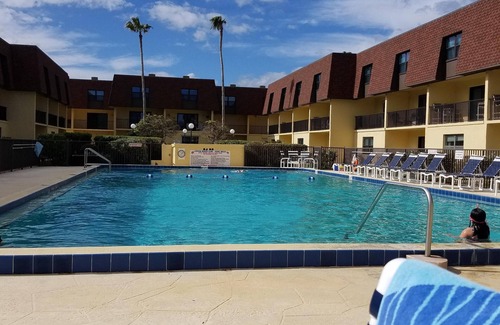 This oceanfront, ground floor, corner unit is steps away from The Cocoa Beach Pier and all the attractions the Canaveral Coast has to offer. With three bedrooms, two full baths, a laundry room and all the conveniences of home you will surely make your vacation memorable. Enjoy watching the sun rise on the patio accessing the beach from the private front lawn. Located right outside your front door is the courtyard where you can practice your putting on the putting green or take a dip in the beautiful heated pool.