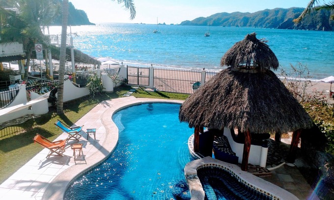 Oceanfront Villa with garden and pool, on the beach. Individual rooms 125/nt. | Villa in Cuastecomate
