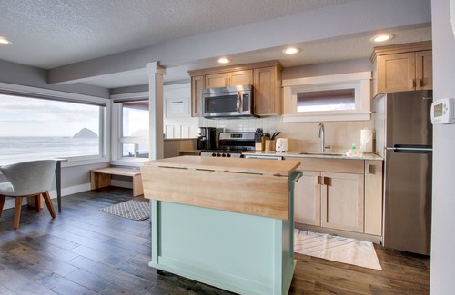 Oceanside Inn #1 is one of the favored units at Oceanside Inn. This historic property dates back to the 1920’s but recently underwent a full renovation. #1 is on the main level, on the Western (ocean-facing) end of the Southern wing, with unobstructed views of the Pacific Ocean and Three Arch Rocks National Wildlife Refuge.