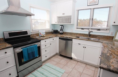 Top Level: Features a large, open great room with flat-screen smart TV, deck access with ocean views, ship's watch with poker table, half bathroom, beverage bar with Keurig and 2 beverage/wine coolers, dining area with seating for 10, island bar seating for 3 and a fully-equipped kitchen with breakfast bar seating for 3. King Master Bedroom with flat-screen TV and full bath.