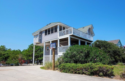 Extras: Private Pool (30 x 14), Hot Tub, 6 TVs, screened porch, gas grill, high speed internet, air hockey, gas grill, outside shower, hammock, deck swing, basketball hoop, beach cart, beverage cooler, DVDs and games, picnic table, parking for 6-8 vehicles, wood fireplace (available 11/1-4/1) and linens and towels provided. No Smoking. No Pets. Seasonal Flex Stay available from October 1 - May 15 Distance to beach access: 450'. Beds: 2 Kings, Queen, 2 Bunk Sets, 2 Singles. House Address: 874 Whalehead Drive, Corolla. Key Type: Keyless entry. CHECK IN LOCATION: 1023 Ocean Trail, Corolla Office.