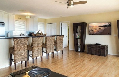 Our beautiful home is the perfect spot to base yourself for exploring all that Big Island Hawaii has to offer. It's at the central west coast where the best white sand beaches are within minutes of drives! Enjoy fabulous ocean views from the front porch with your morning cup of coffee, or enjoy the sunsets from the patio while grilling.