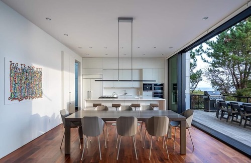 • Dining Area: Seating for large groups, natural light, ocean view