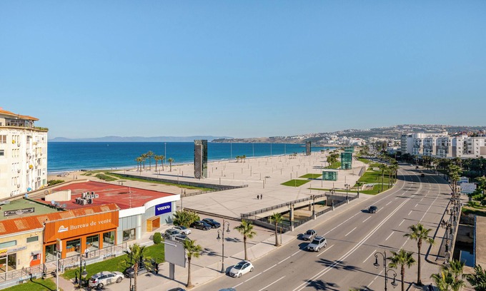 FAST INTERNET: FIBER 100 Mb / Right in the HEART of Tangier! Located at the Bay (Corniche) of Malabata, this apartment is a luxurious and spacious one-bedroom unit that offers breathtaking views of the beach. The apartment is located on the 4 floor of the building and features large windows that offer unobstructed views of the sea, allowing you to enjoy the beauty of the beach from the comfort of your own home!